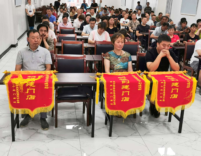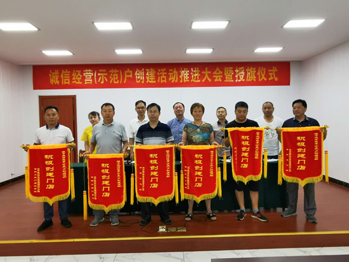 2020年7月28日上午9:30分誠信經(jīng)營(yíng)(示范)戶(hù)創(chuàng )建活動(dòng)推進(jìn)大會(huì )暨“積極創(chuàng )建門(mén)店”授旗儀式在常州食品有限公司會(huì )議中心隆重舉行。